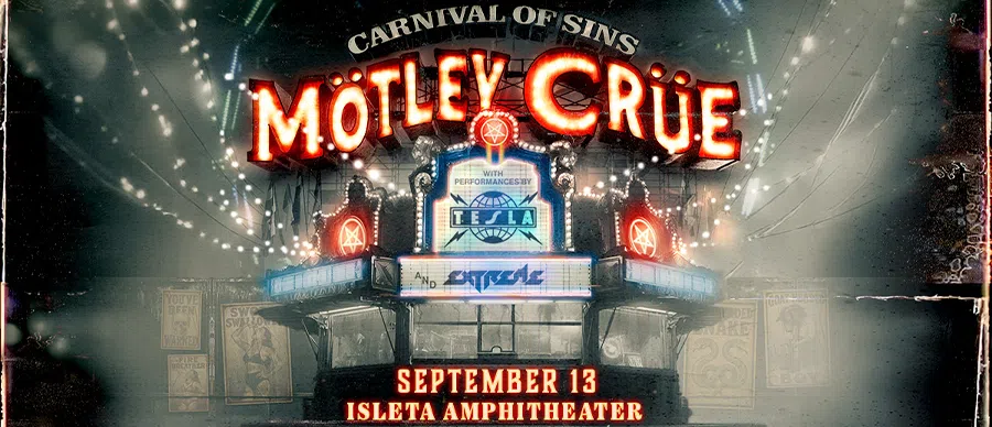 Get ready for a night on the Wild Side! Mötley Crüe is bringing the Return of the Carnival of Sins tour to Isleta Amphitheater on September 13🔥With performances by Tesla & Extreme.
